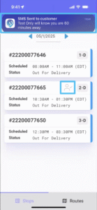If you select “No, Send SMS,” you will receive a notification indicating that a message will be sent to the customer, who will then receive a text message informing them of the anticipated arrival time.