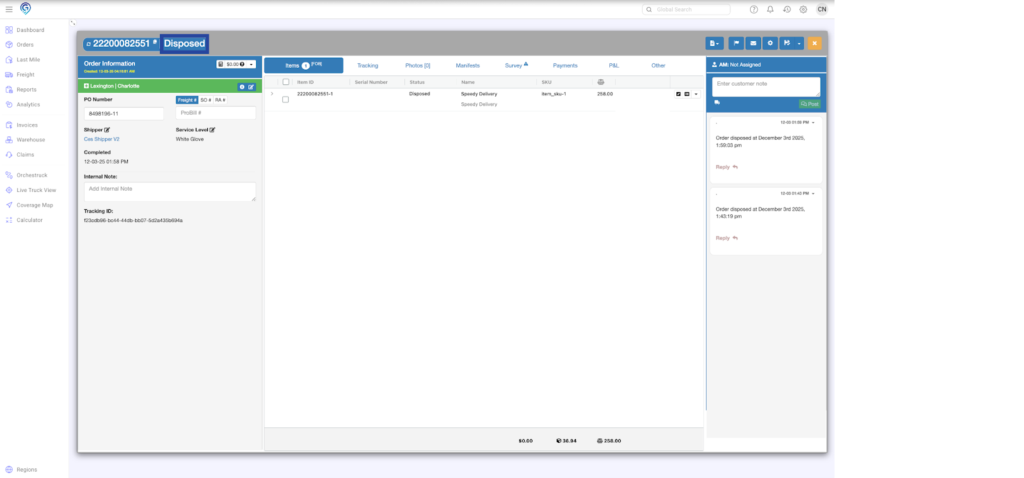 The order is now showing a Disposed status.