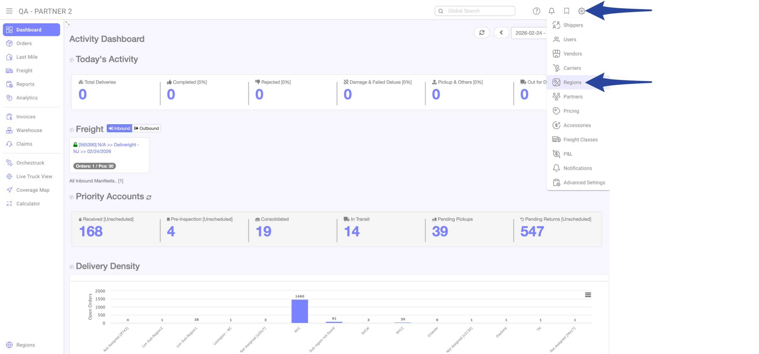 Click the gear icon from the main Dashboard and select Regions.