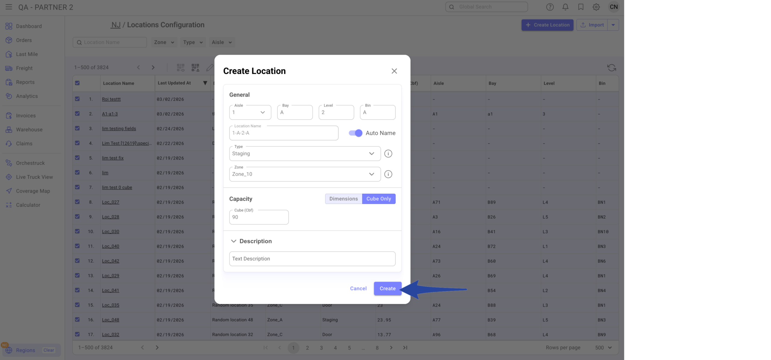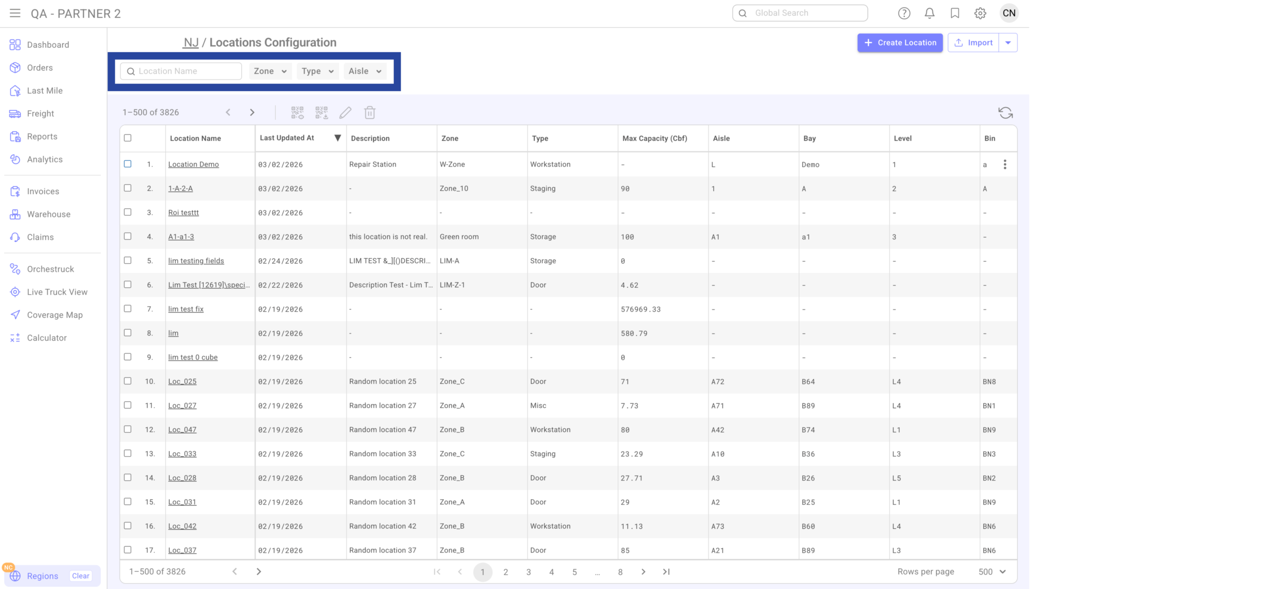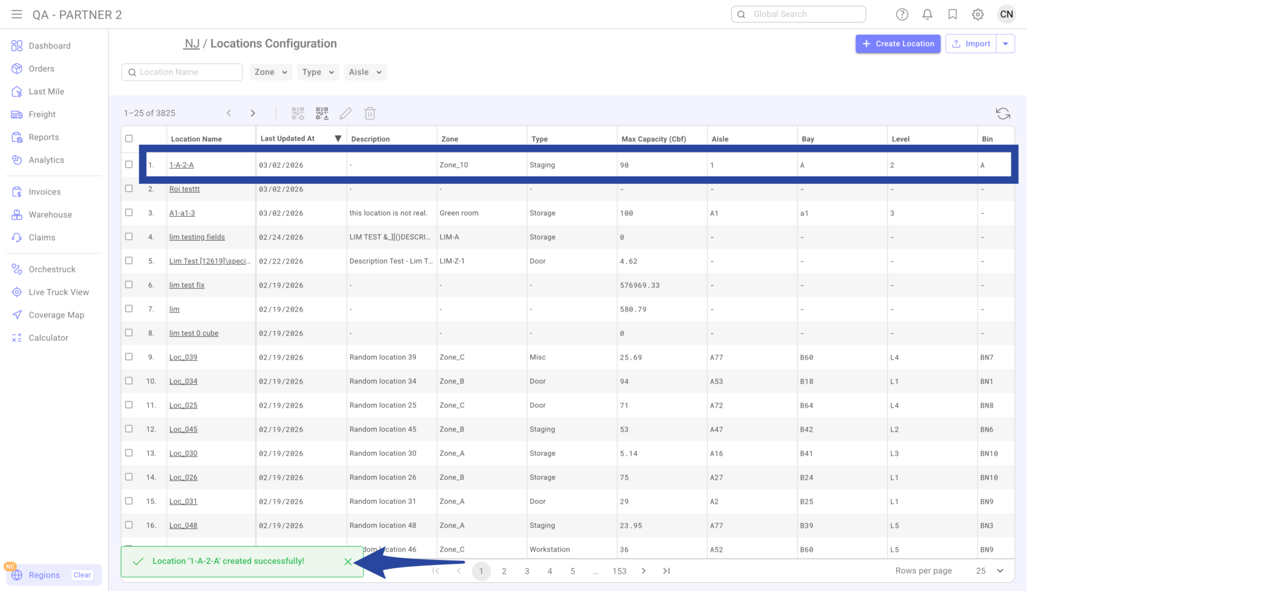 If a location already exists, it will update (not duplicate). Location Name and Code cannot be changed after creation.