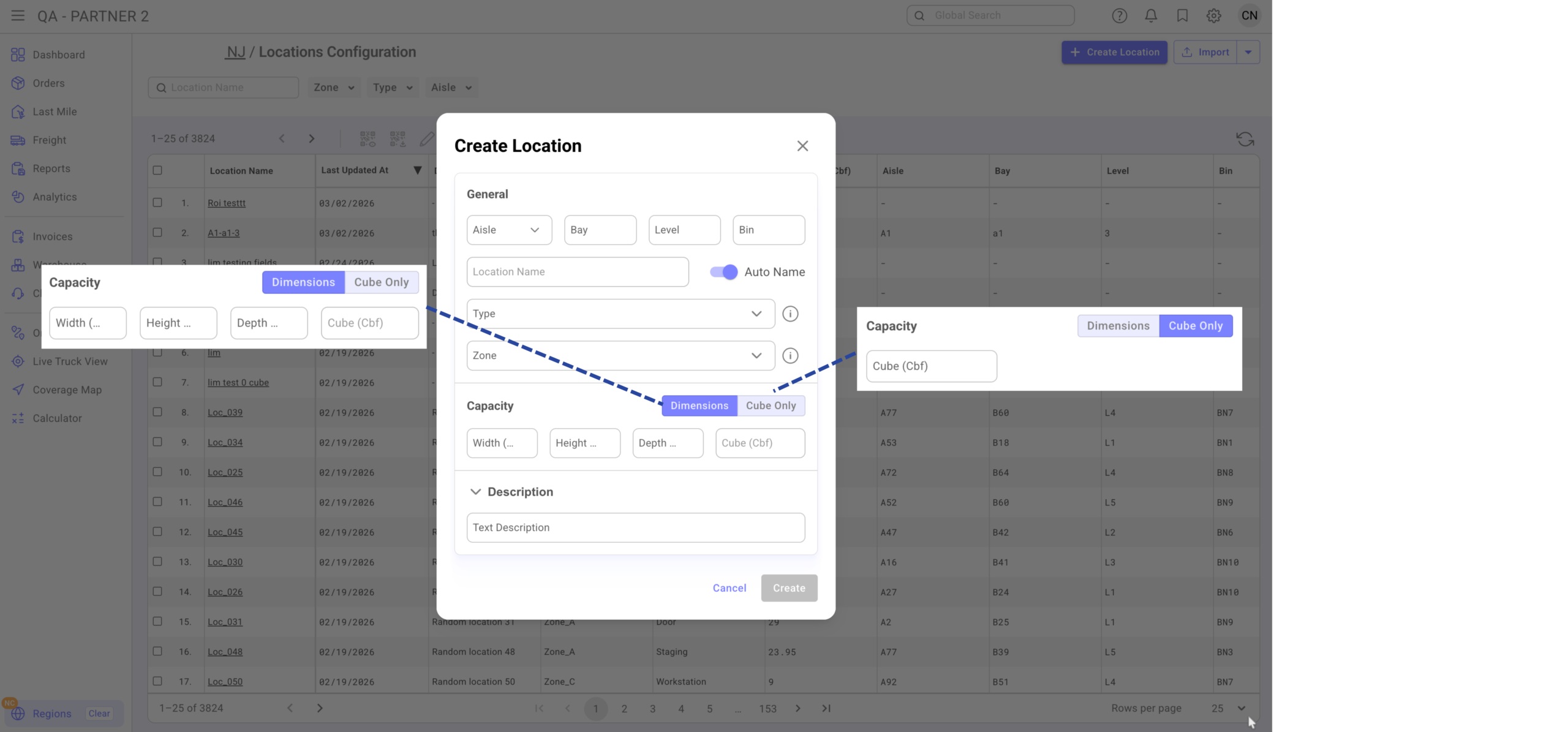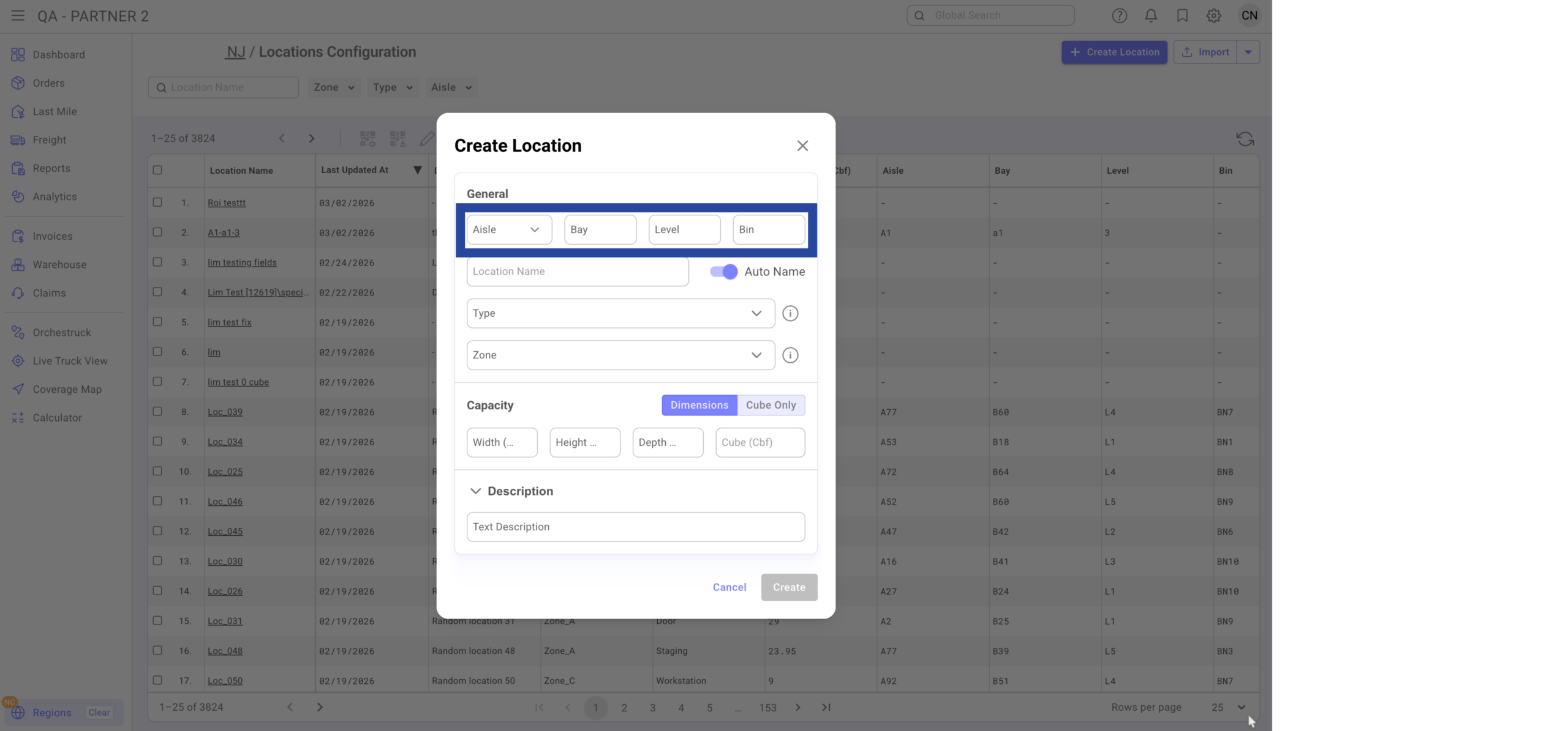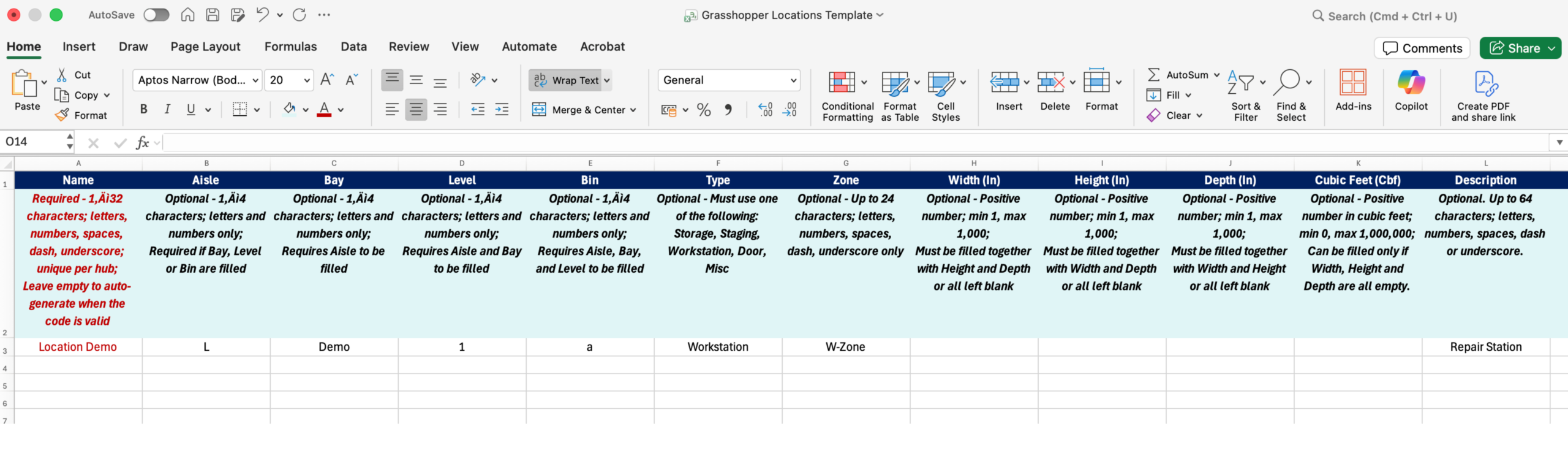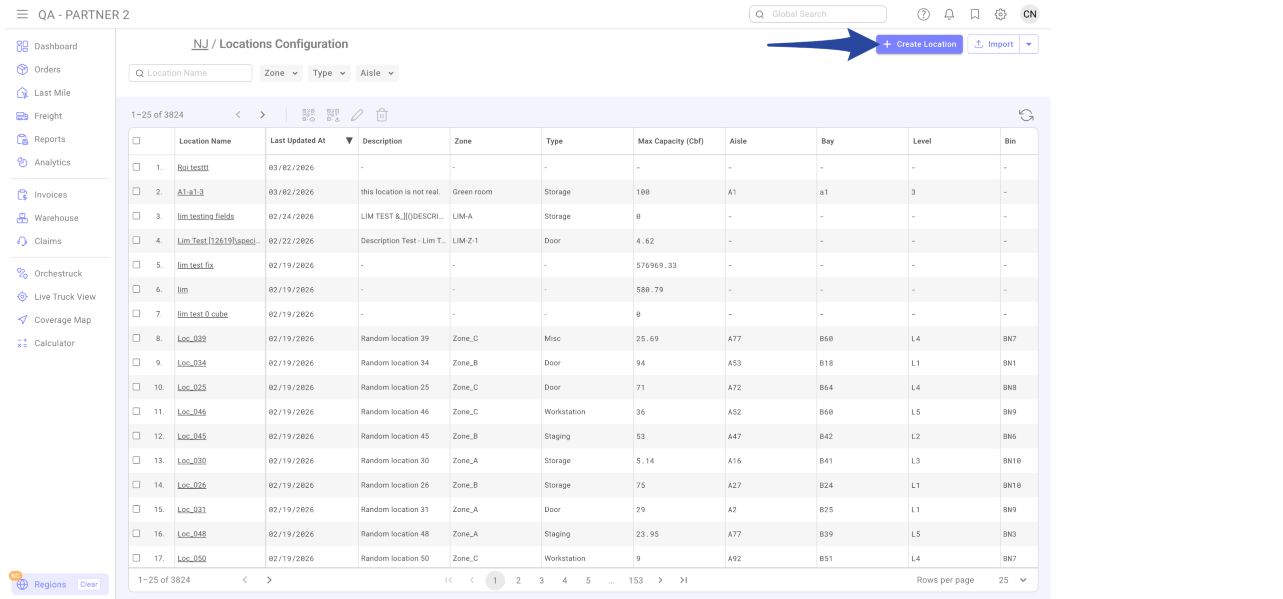 If a location already exists, it will update (not duplicate). Location Name and Code cannot be changed after creation.