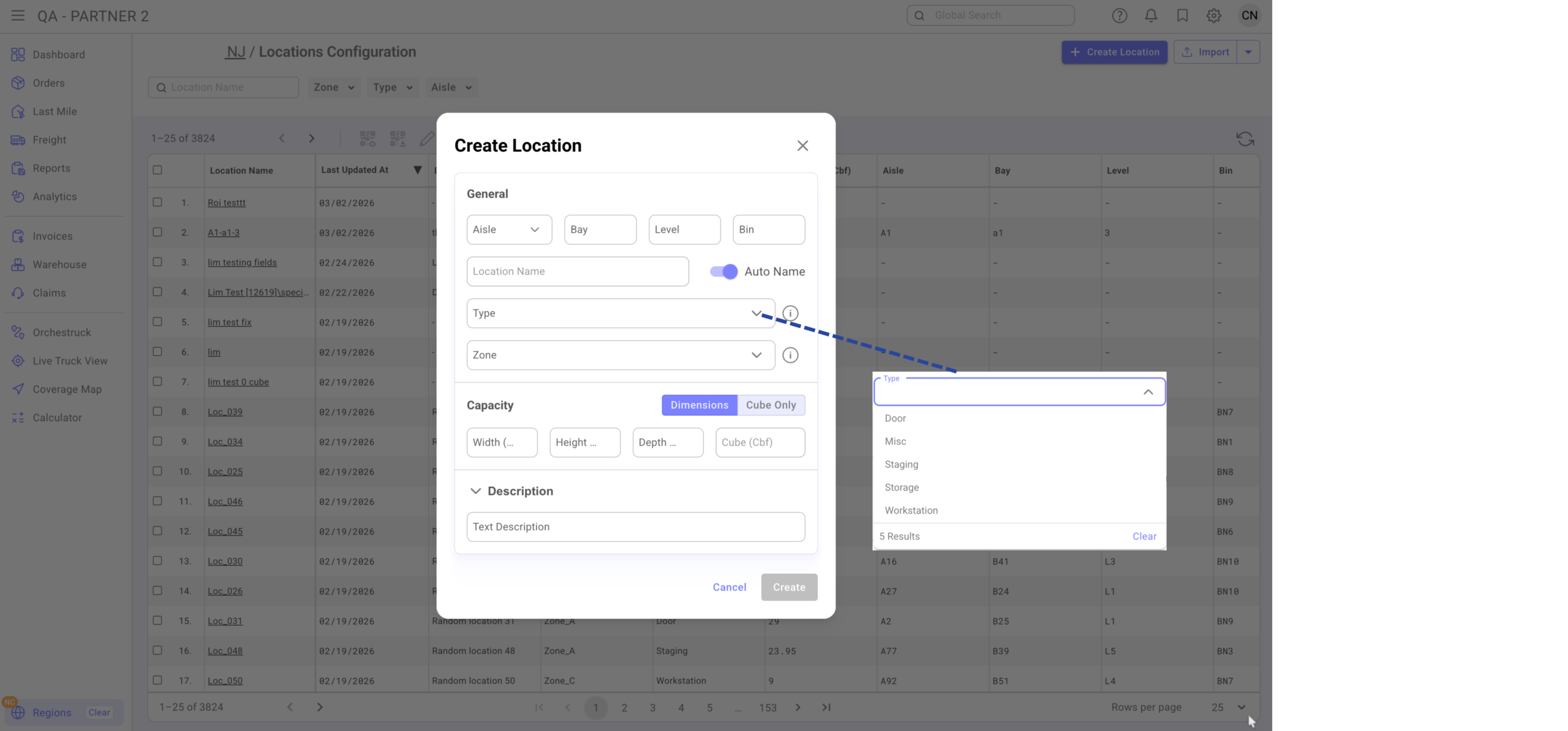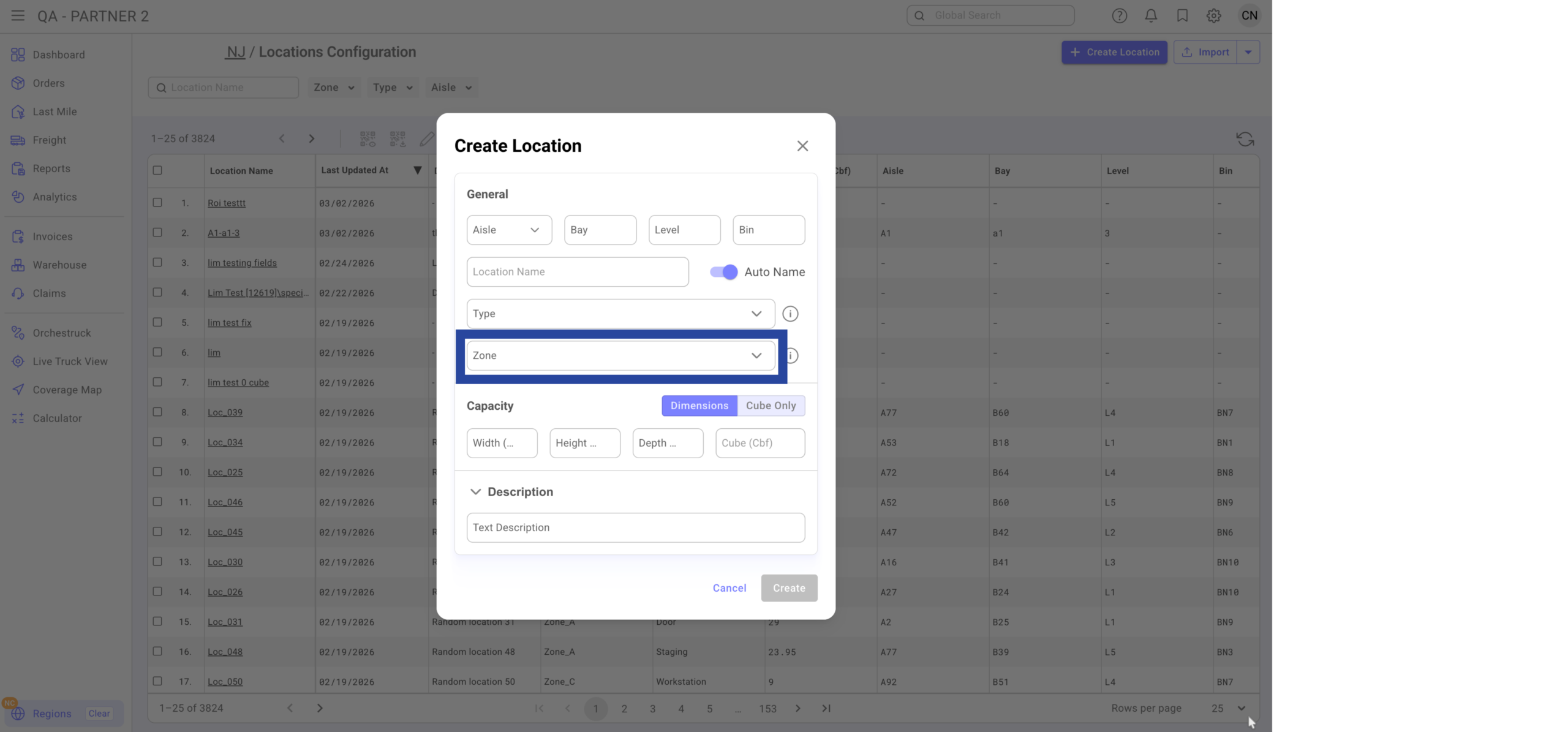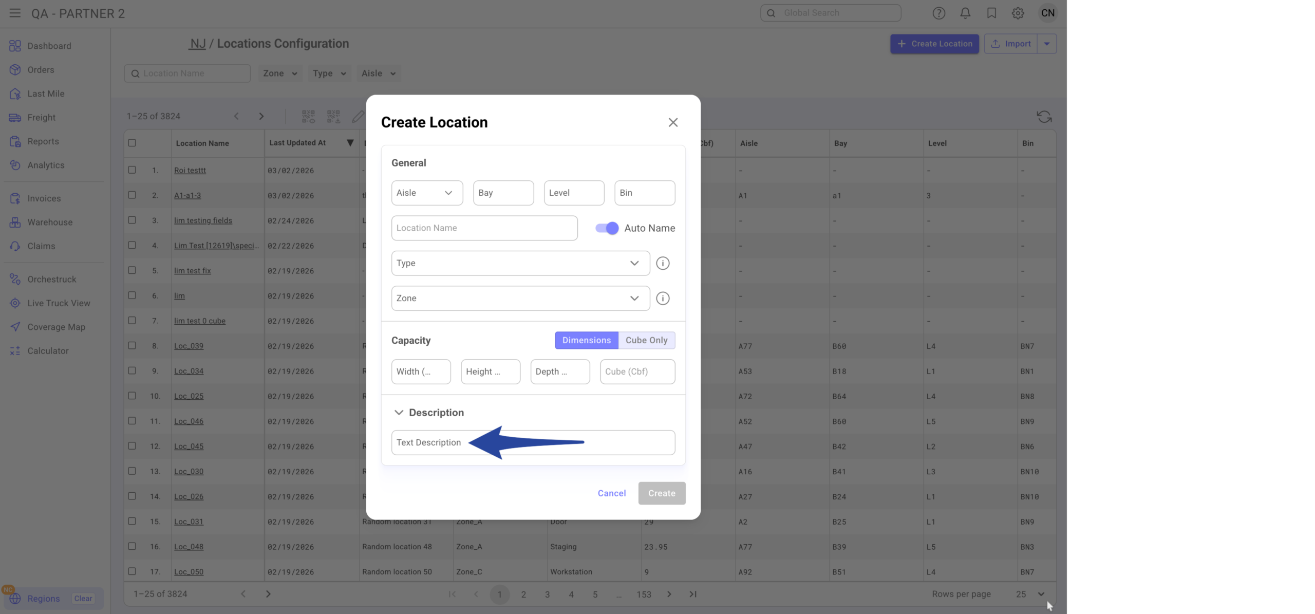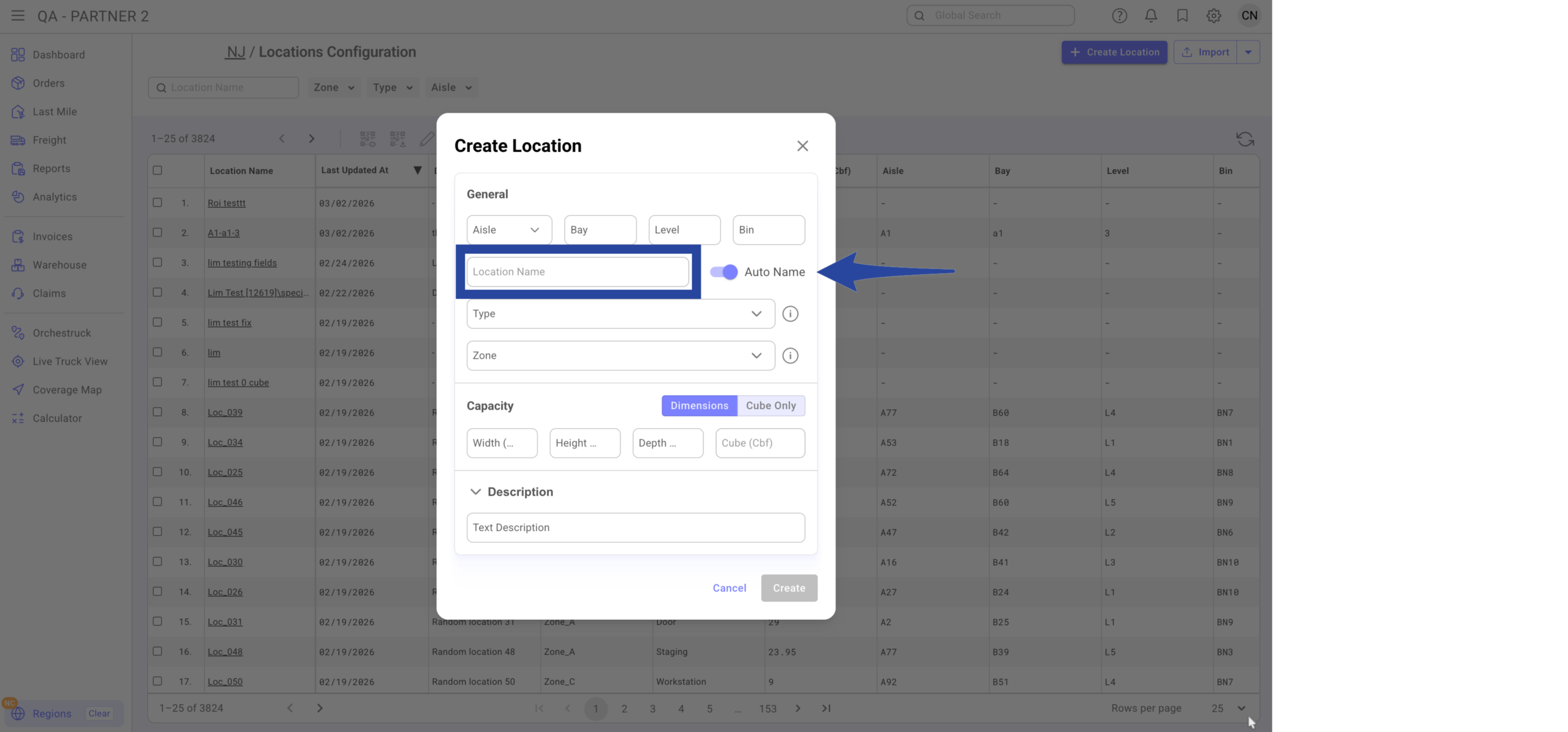 When entered, the system auto-generates the location name.